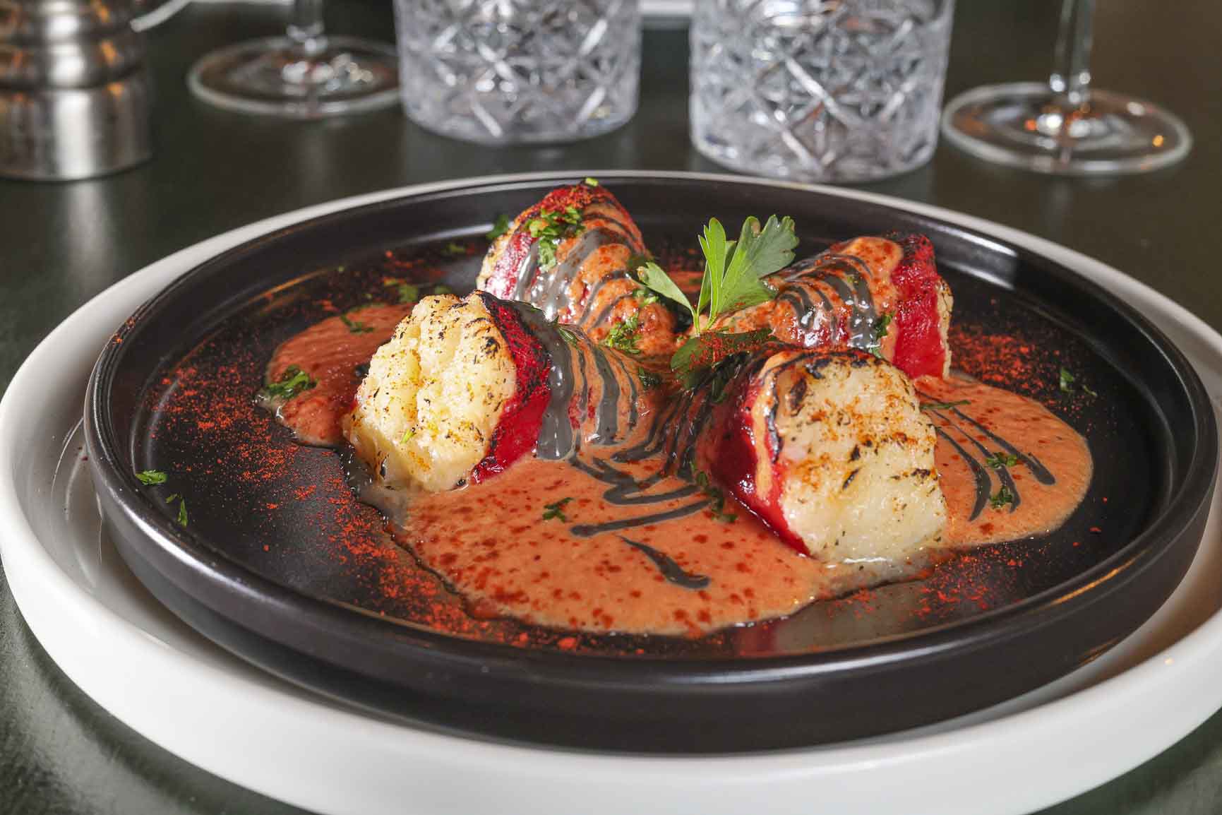 Pimientos del piquillo rellenos de brandada de bacalao.