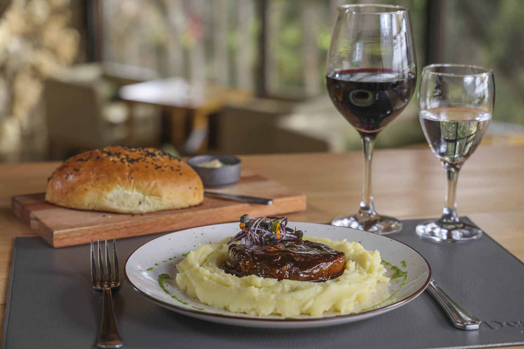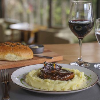 Ojo de bife de pastura, cremoso de papa, baño de miso y togarashi.