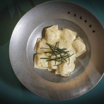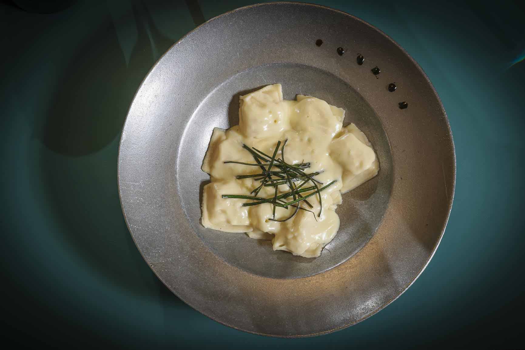 Panzotti de Trucha con Crema Perfumada Limón.